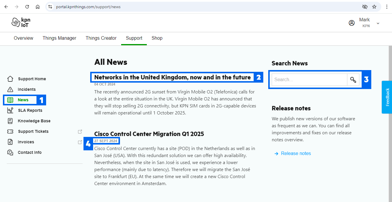 1. Click on **News** in the menu to see all news items under **All News**